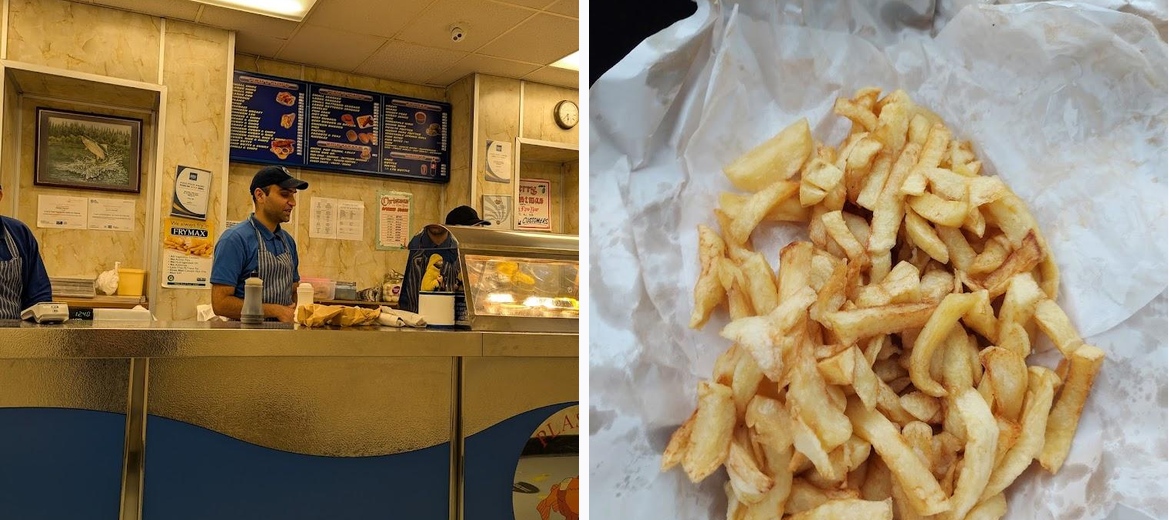 An excellent, traditional chippie. Wide choice of fish properly cooked. Perfect chips. I like the peas but that’s just my Manchester blood coming through. Perfect… no negatives. Everything is good.